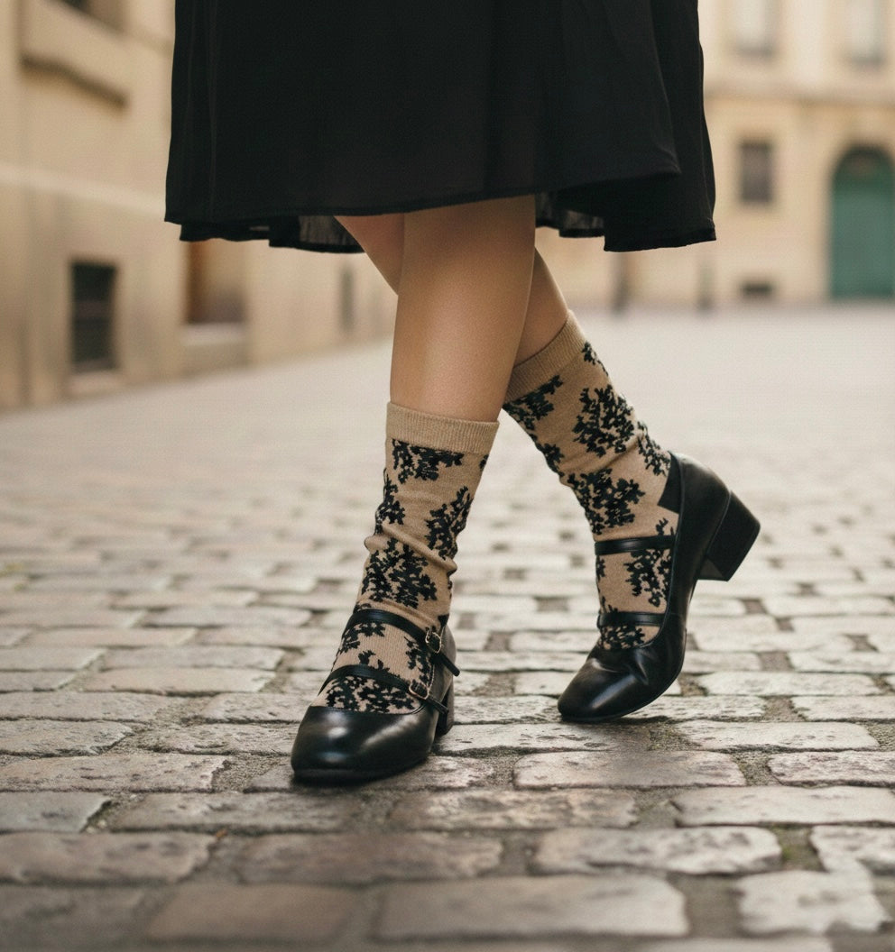 伝統的な柄に見えても新しいスタイルのソックス